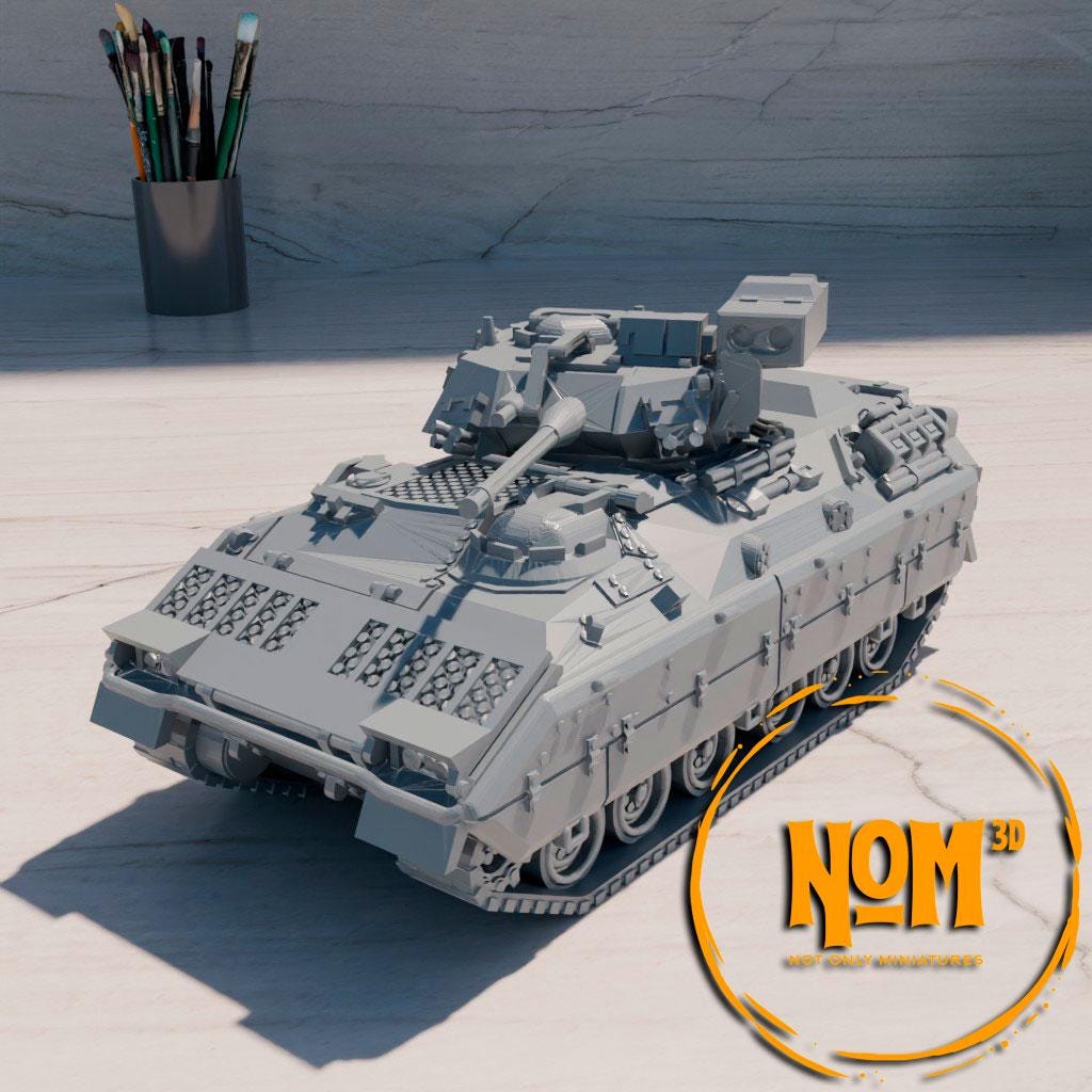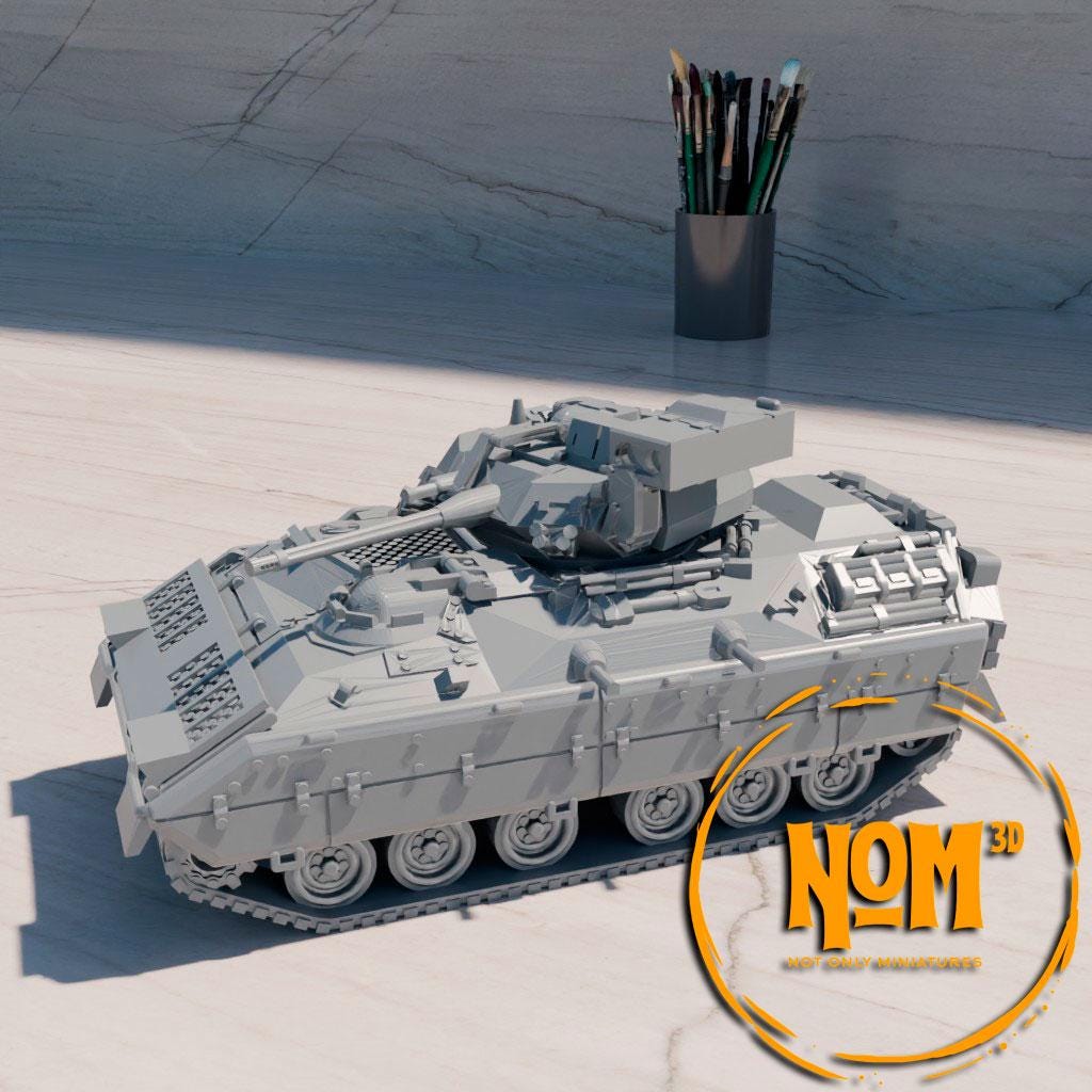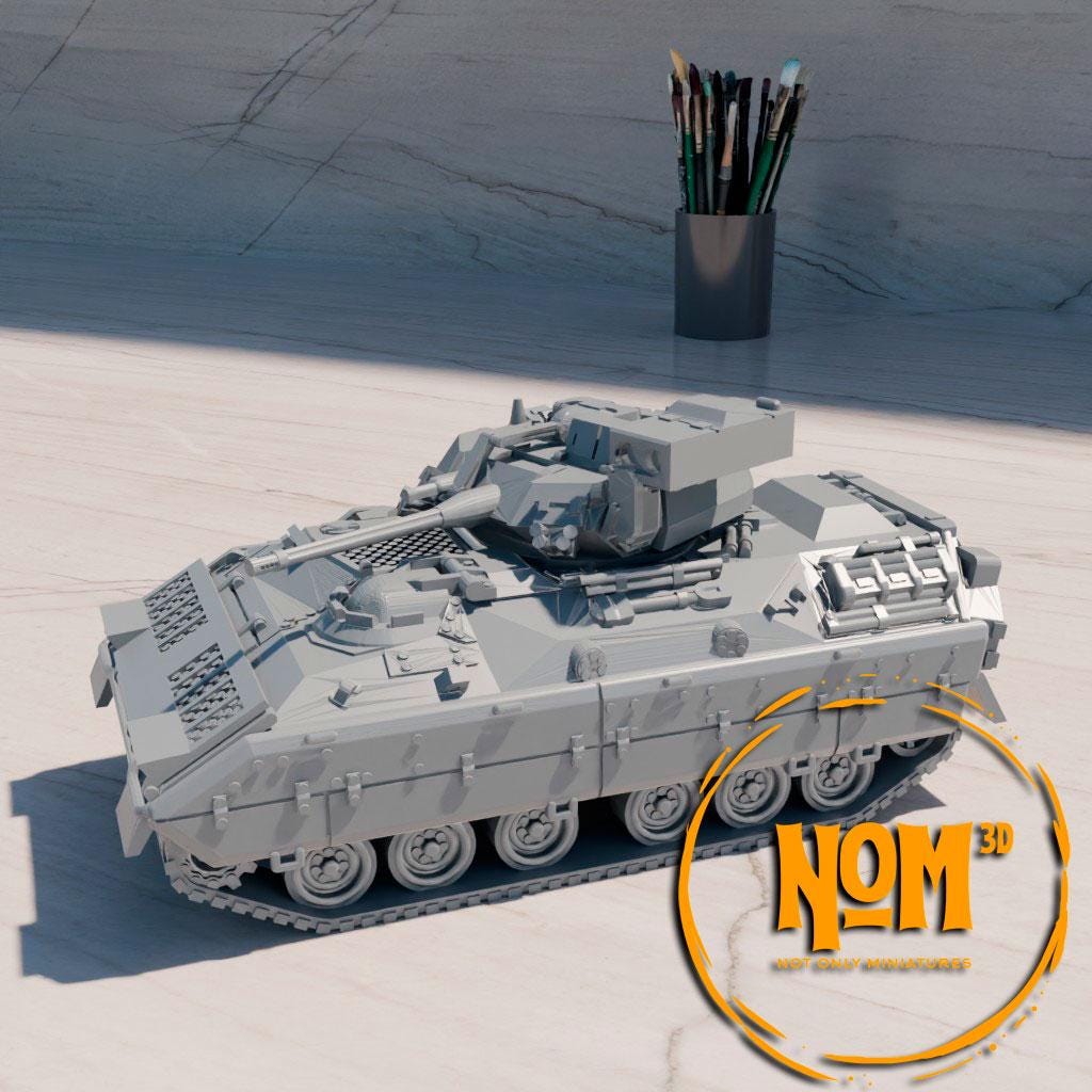 El M2A1 Bradley está diseñado para transportar tropas de infantería bajo protección blindada, mientras que el M3A1 Bradley se especializa en misiones de reconocimiento, ambos combinando movilidad, potencia de fuego y resistencia en el campo de batalla. Vehículo modelado y licenciado por .