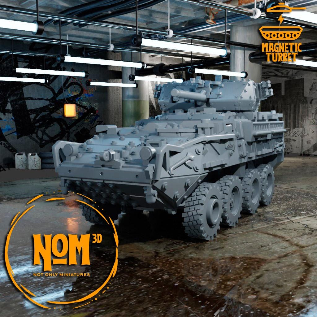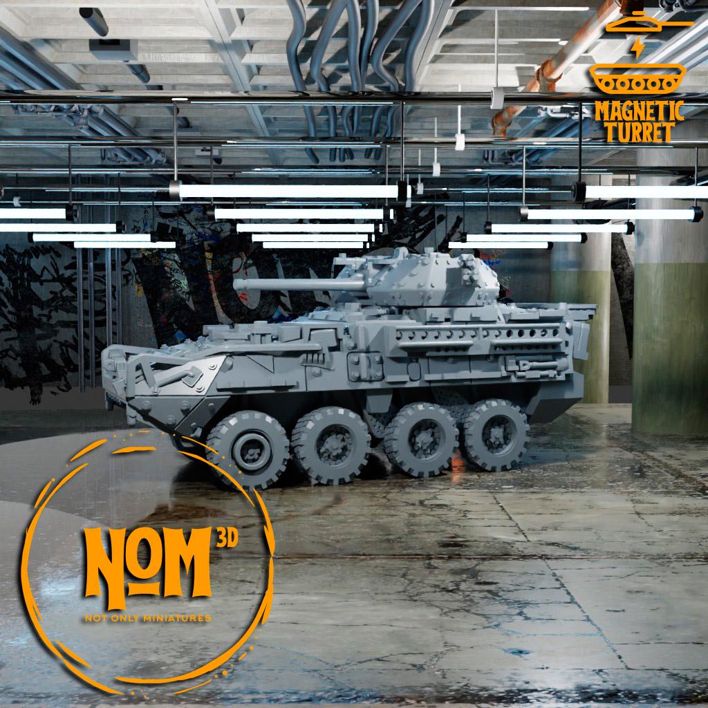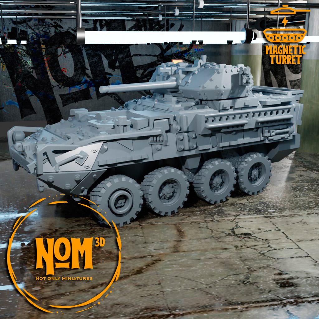 M1296 Stryker Dragoon: Vehículo blindado de combate estadounidense equipado con un cañón automático de 30 mm, diseñado para ofrecer mayor potencia de fuego.Este modelo de vehículo militar en miniatura está impreso en resina 3D con todo lujo de detalles.