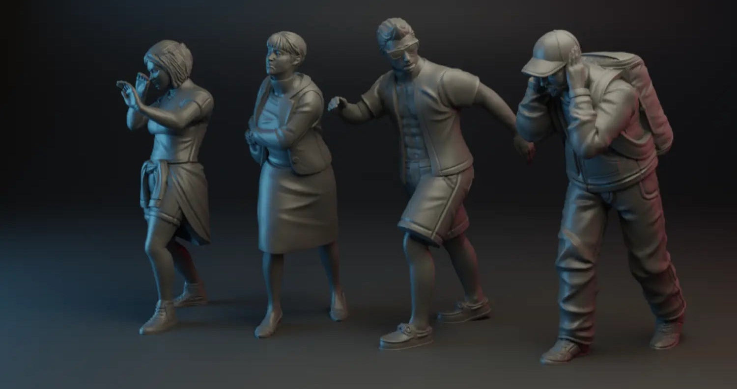 Incluyelas figuras de 4 civiles que han visto el peligro de cerca y están empezando a conocer el miedo.