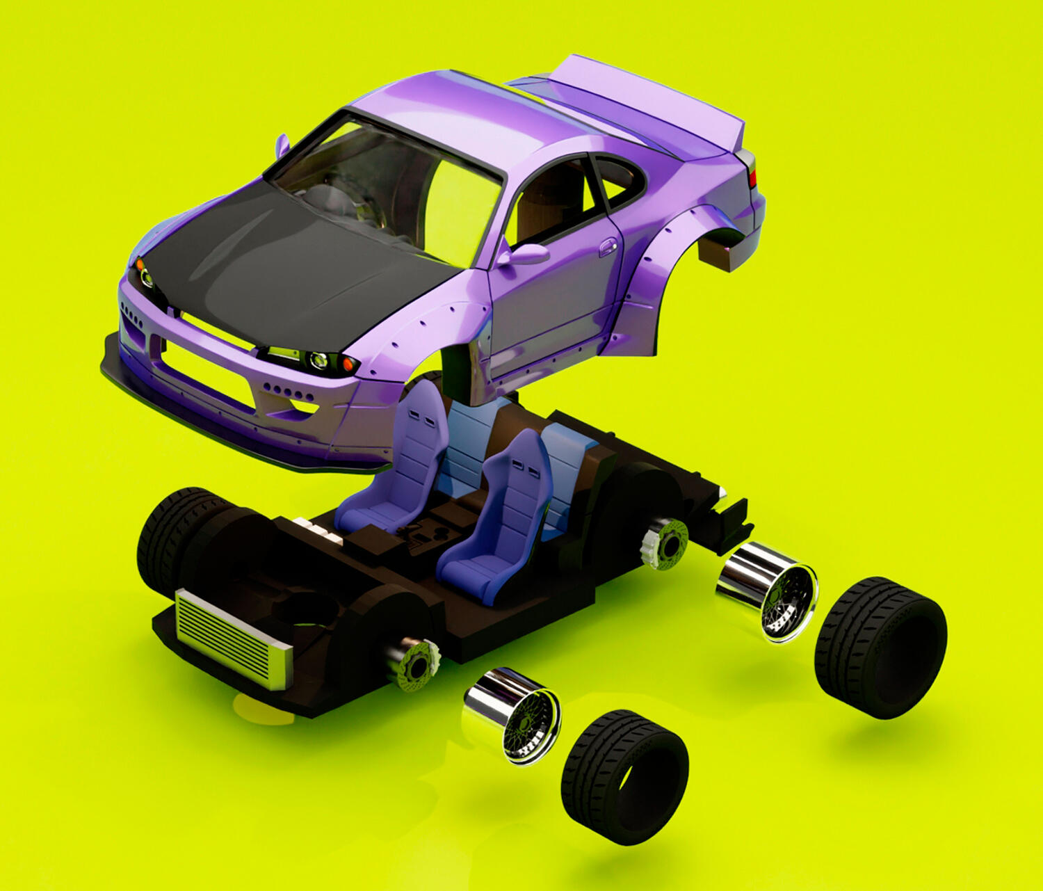 Impresionante maqueta del Nissan Silvia S15 con el kit Rocket Bunny que lo hace super ancho.